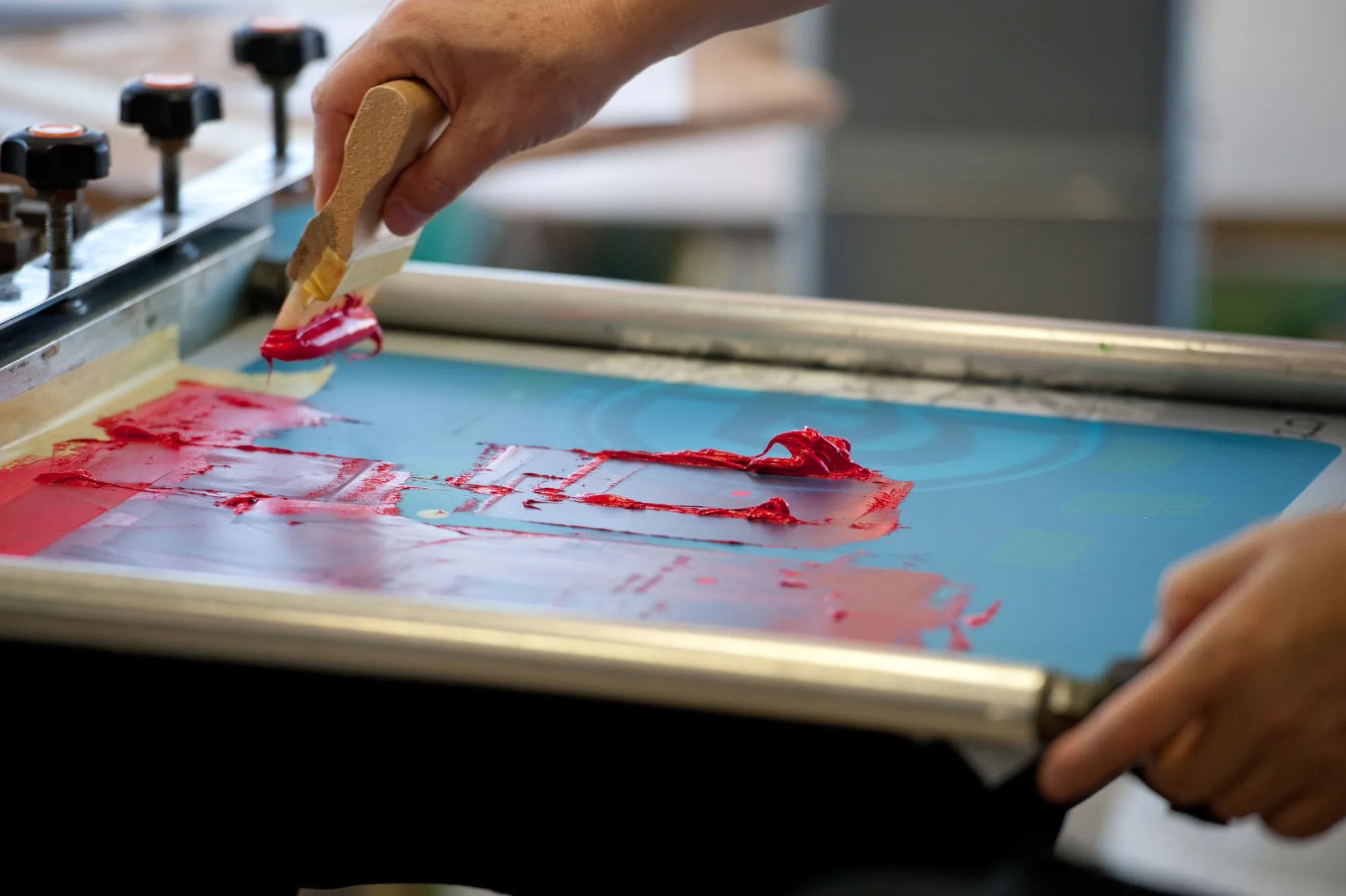 当社では、MAESTROシリーズの全自動シリンダー式スクリーン印刷機「MS-80A」を導入し、100ミクロン以下の薄物素材にも高精度・高速印刷が可能です。